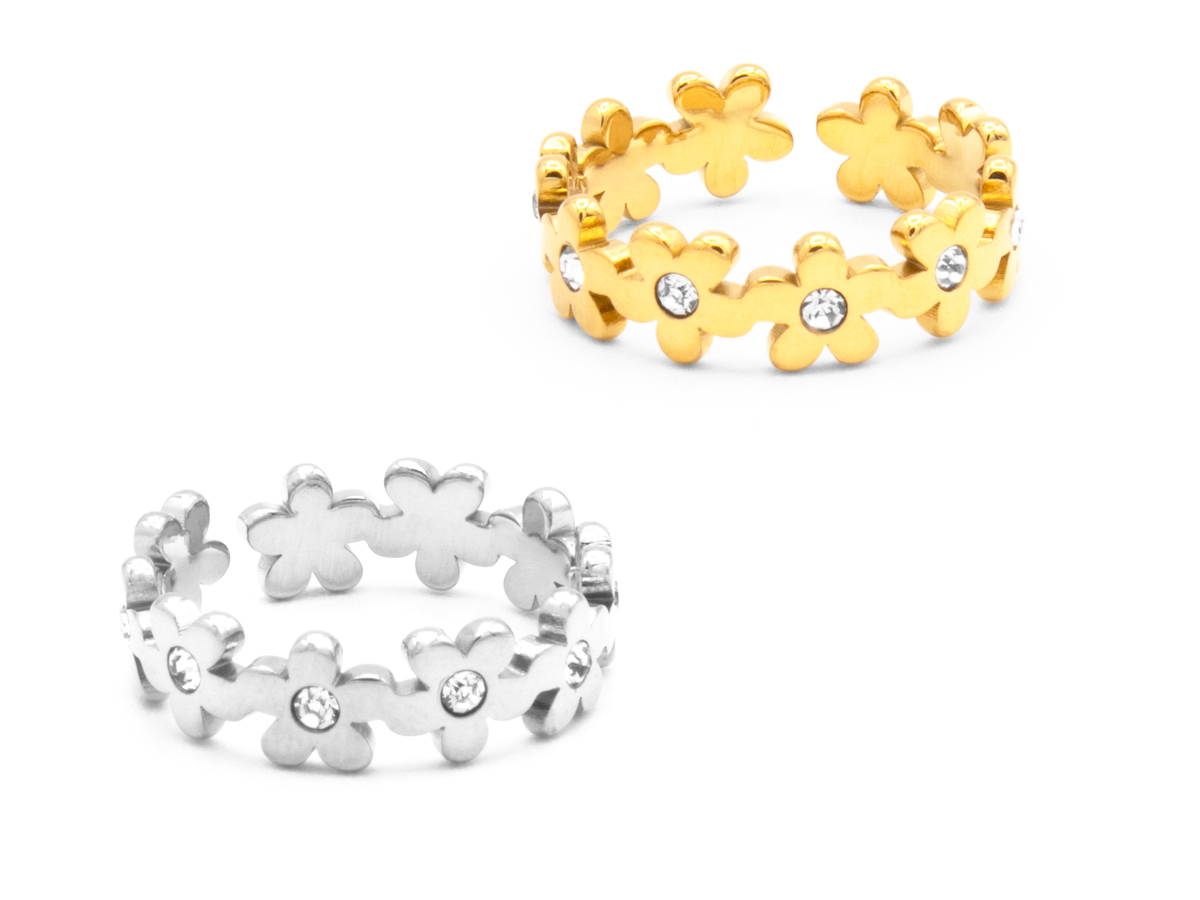 DONNA ANELLO REGOLABILE A FIORI CON PUNTI LUCE CORTINA POLO STYLE CF 4PZ