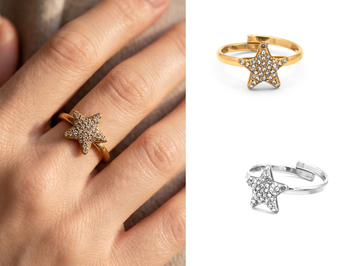 CORTINA POLO STYLE. ANELLO DA DONNA A STELLA IN ACCIAIO E ZIRCONI. MATERIALE: ACCIAIO E ZIRCONI. COLORI ASSORTITI. CONFEZIONE: ELEGANTE SCATOLA A SOFFIETTO.