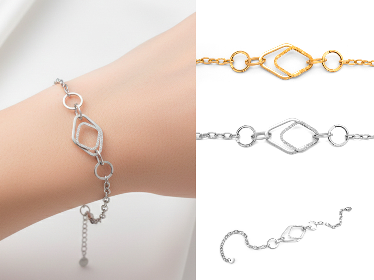 CORTINA POLO STYLE. BRACCIALE DA DONNA A ROMBI. MATERIALE: ACCIAIO. COLORI ASSORTITI. CONFEZIONE: SCATOLA E SHOPPER.