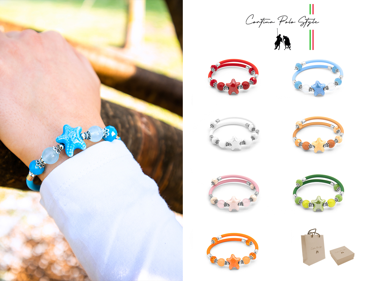 CORTINA POLO STYLE. BRACCIALE DA DONNA IN METALLO, PIETRA DURA, CRISTALLI, CERAMICA E CAUCCIU' - PRODOTTO ARTIGIANALE MADE IN ITALY - CONFEZIONE: SCATOLA E SHOPPER. CORREDATO DA CERTIFICATO DI GARANZIA.