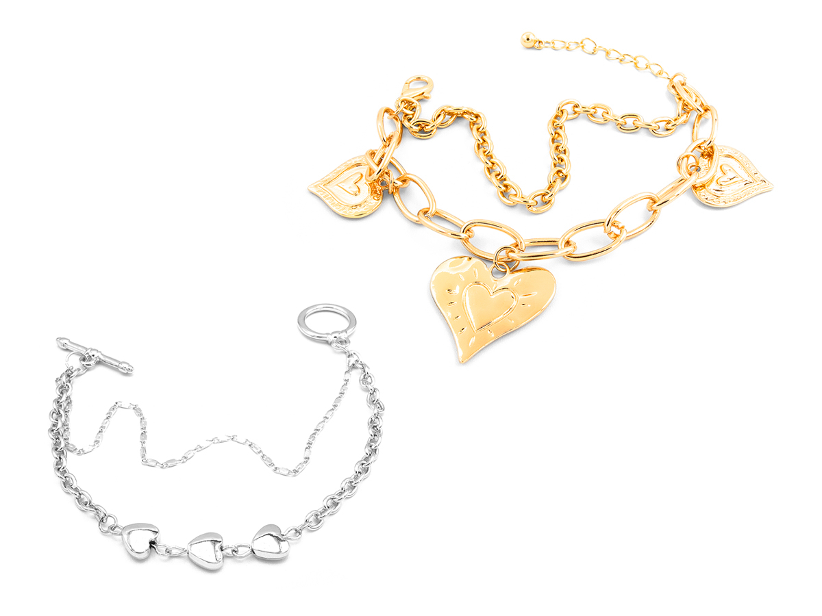 CORTINA POLO STYLE. BRACCIALE DA DONNA CON CUORI IN METALLO. MODELLI ASSORTITI. CONFEZIONE: SCATOLA E SHOPPER.