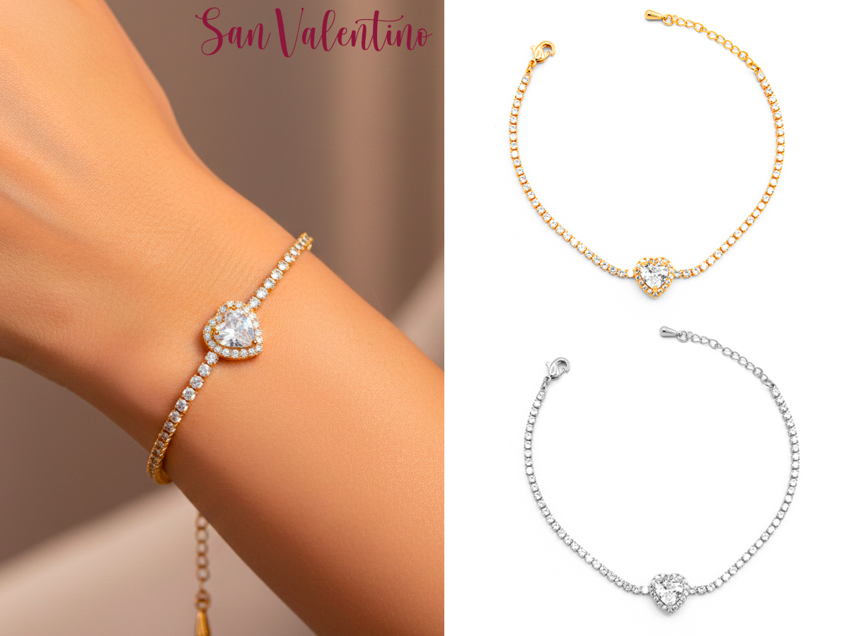 CORTINA POLO STYLE. BRACCIALE DA DONNA MODELLO TENNIS CON CUORE DI ZIRCONE. MATERIALE: OTTONE E ZIRCONI. COLORI ASSORTITI. CONFEZIONE: SCATOLA E SHOPPER.