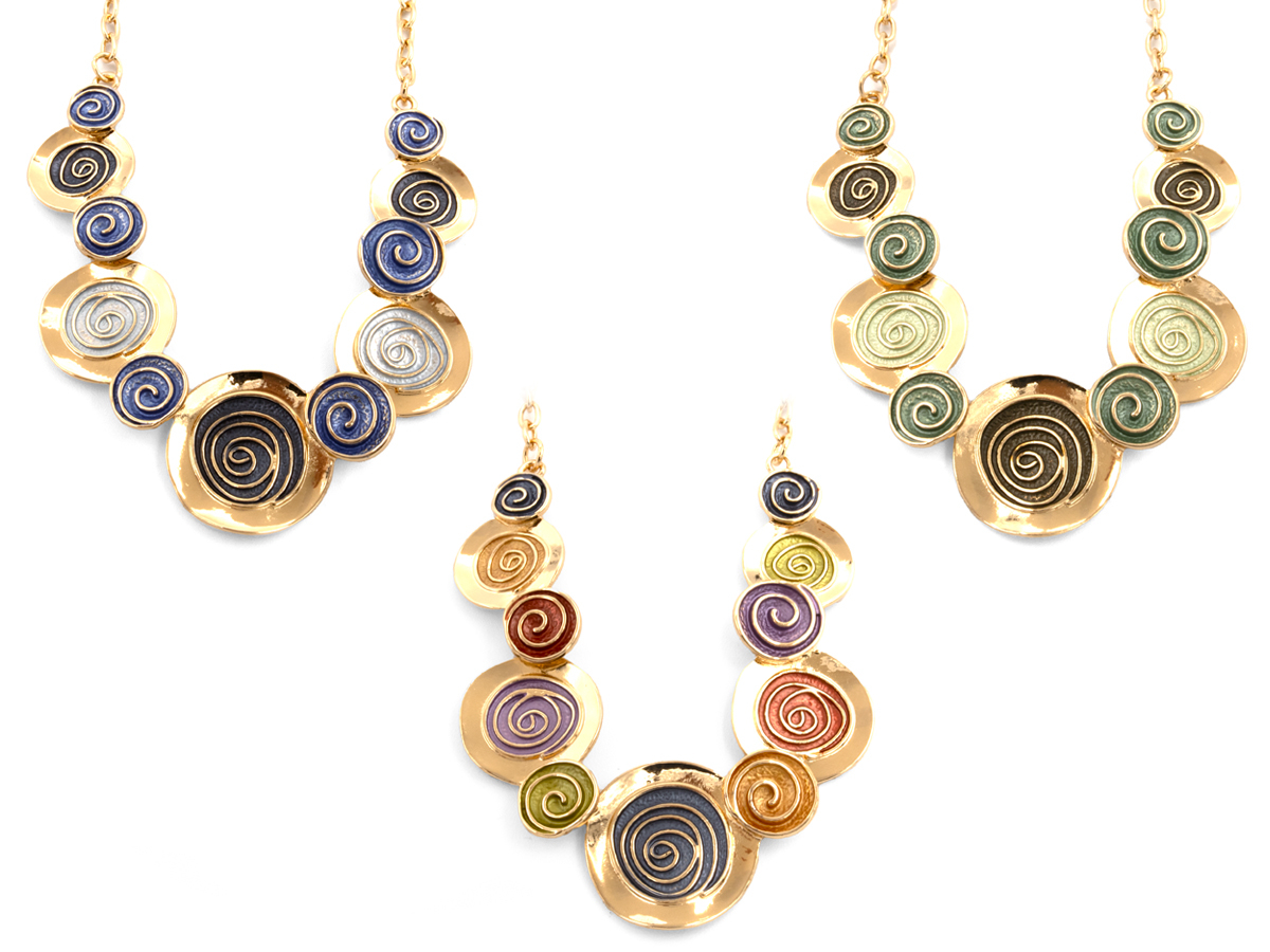 CORTINA POLO STYLE. COLLANA DA DONNA CON SOGGETTI A SPIRALE IN LEGA DI ZINCO SMALTATA. LUNGHEZZA 48 CM. COLORI ASSORTITI. CONFEZIONE: SCATOLA E SHOPPER.