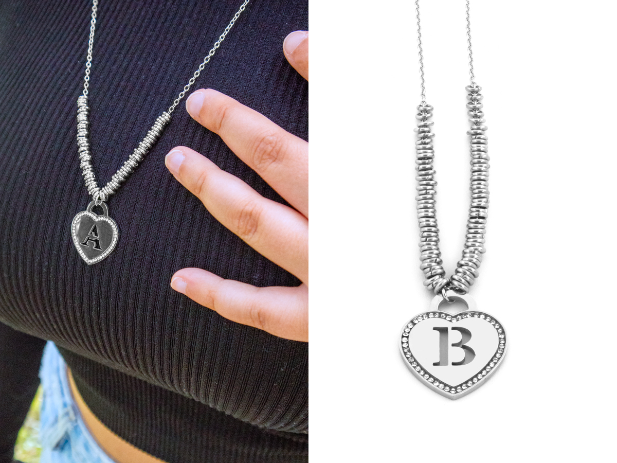 NAVIGARE. COLLANA DA DONNA IN ACCIAIO CON CUORE LETTERA ARRICCHITO DA STRASS. LUNGHEZZA: 45 CM. CONFEZIONE: SCATOLA E SHOPPER.