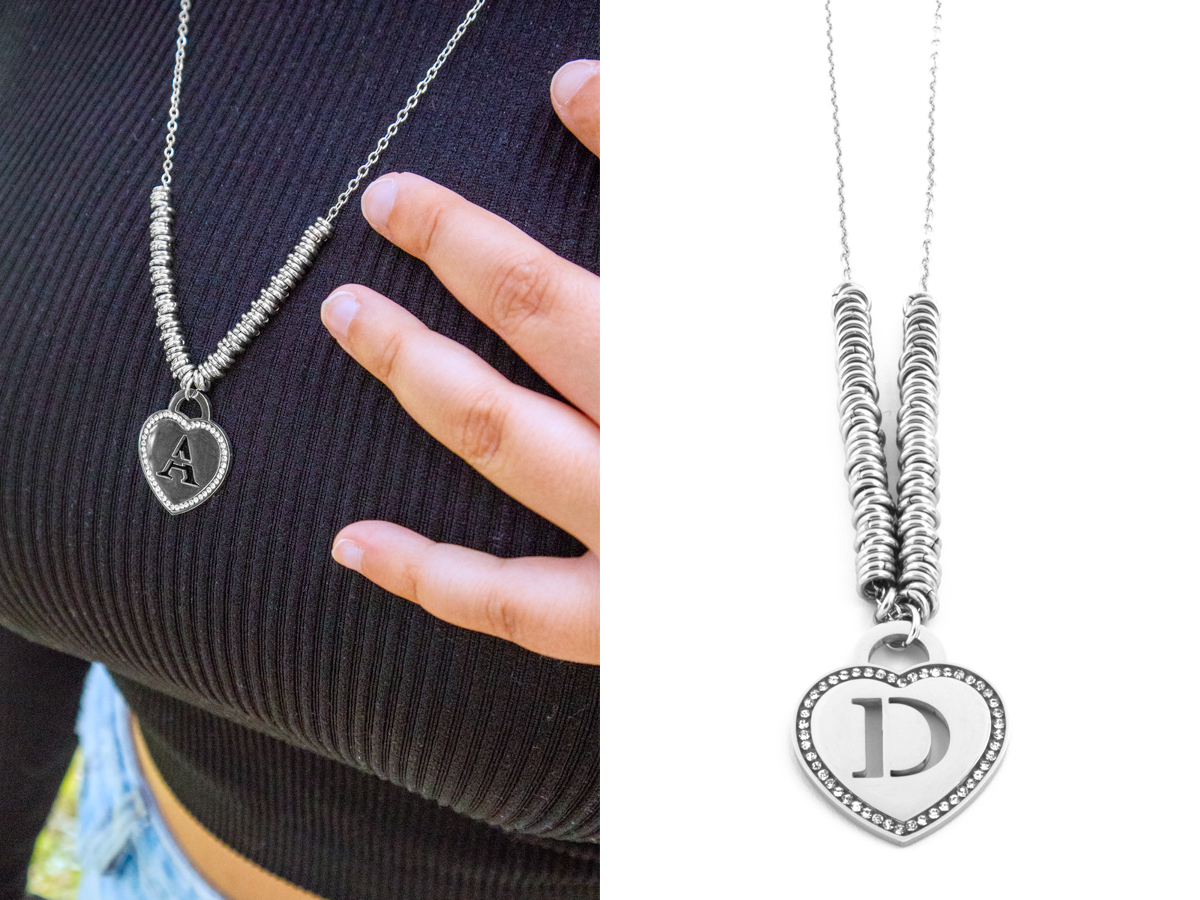 NAVIGARE. COLLANA DA DONNA IN ACCIAIO CON CUORE LETTERA ARRICCHITO DA STRASS. LUNGHEZZA: 45 CM. CONFEZIONE: SCATOLA E SHOPPER.