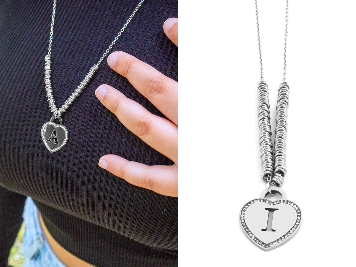 NAVIGARE. COLLANA DA DONNA IN ACCIAIO CON CUORE LETTERA ARRICCHITO DA STRASS. LUNGHEZZA: 45 CM. CONFEZIONE: SCATOLA E SHOPPER.