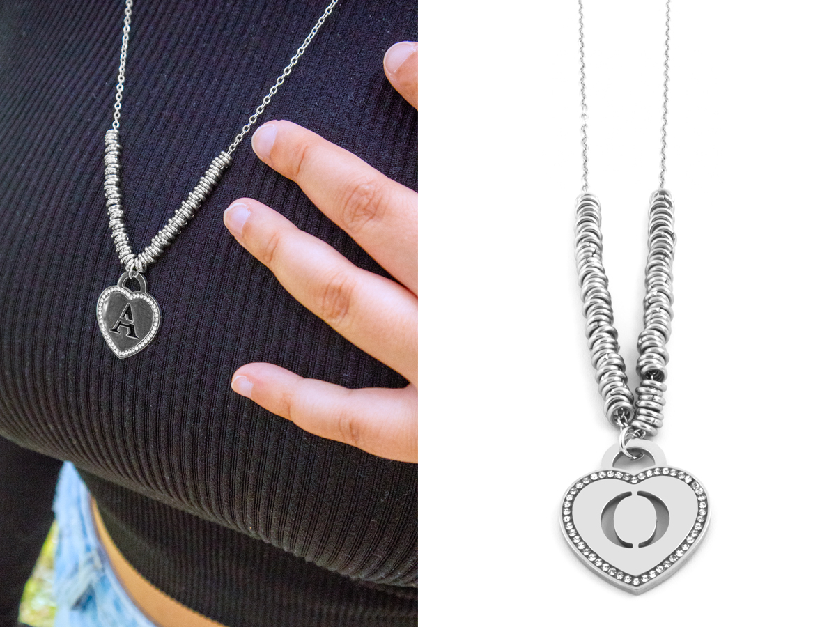 NAVIGARE. COLLANA DA DONNA IN ACCIAIO CON CUORE LETTERA ARRICCHITO DA STRASS. LUNGHEZZA: 45 CM. CONFEZIONE: SCATOLA E SHOPPER.