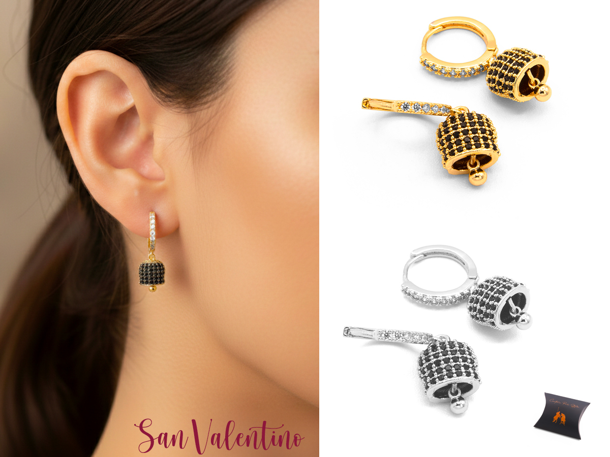 CORTINA POLO STYLE. ORECCHINO DA DONNA A CAMPANELLA CON ZIRCONI. MATERIALE: OTTONE E ZIRCONI. CONFEZIONE: ELEGANTE SCATOLA A SOFFIETTO.