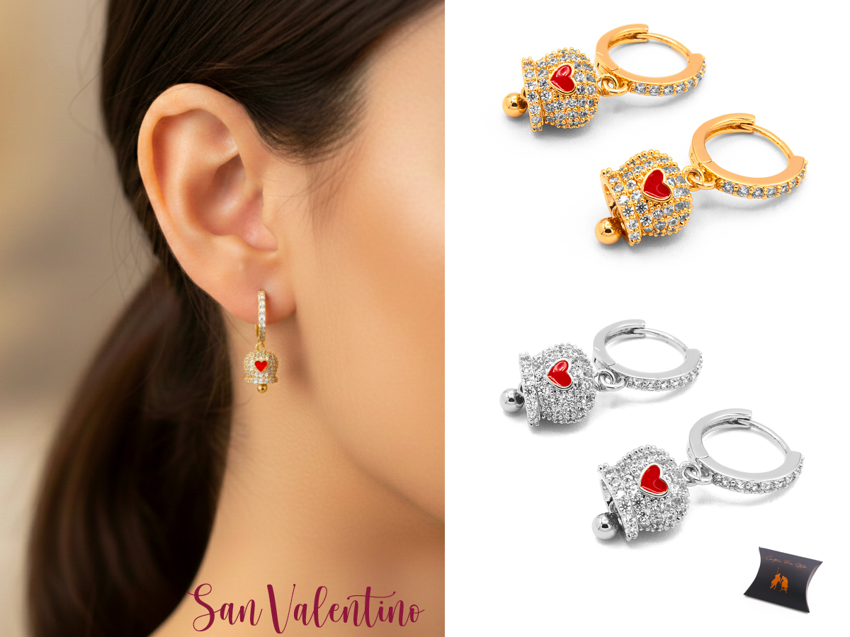 CORTINA POLO STYLE. ORECCHINO DA DONNA A CAMPANELLA CON CUORE CON ZIRCONI. MATERIALE: OTTONE E ZIRCONI. CONFEZIONE: ELEGANTE SCATOLA A SOFFIETTO.