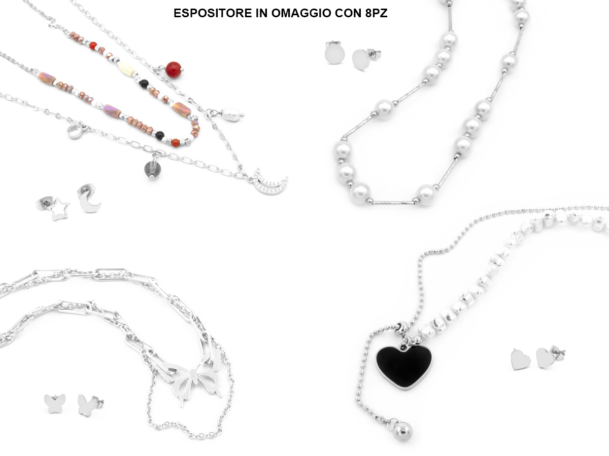 PARURE COLLANA E ORECCHINI IN RAME. COLLANA E ORECCHINI A LOBO COORDINATI . MODELLI ASSORTITI. CONFEZIONE: SCATOLA E SHOPPER.