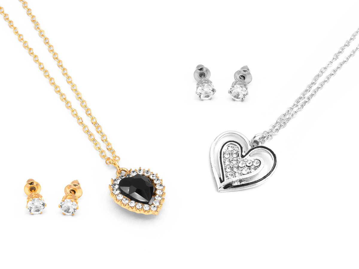 DONNA PARURE CUORE IN METALLO E STRASS POLO C.S. CF 4 PZ