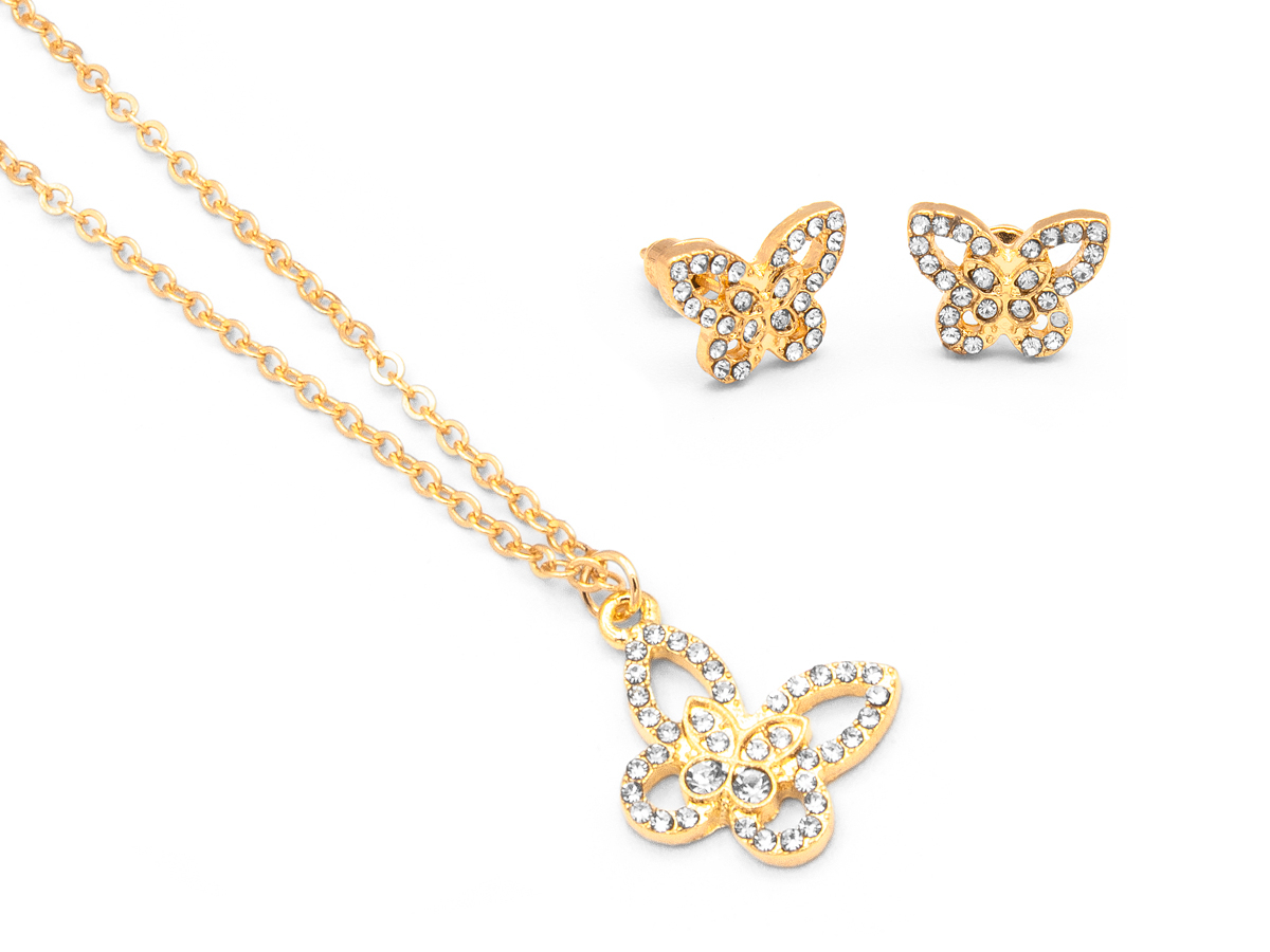 DONNA PARURE FARFALLA IN METALLO E STRASS POLO C.S. CF 4 PZ
