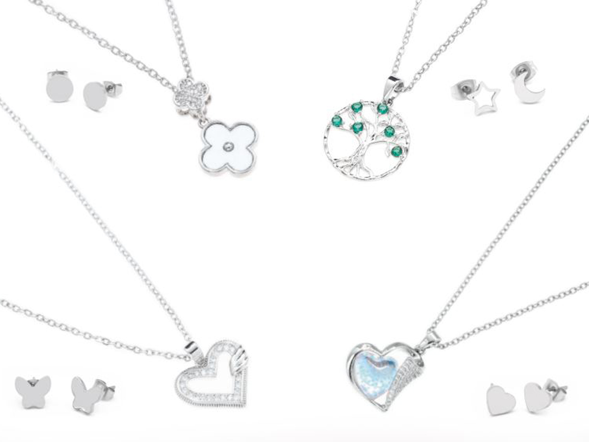 NAVIGARE. PARURE DA DONNA IN METALLO CON CIONDOLO DECORATO CON STRASS E/O SMALTI. MODELLI E COLORI ASSORTITI. CONFEZIONE: SCATOLA E SHOPPER.