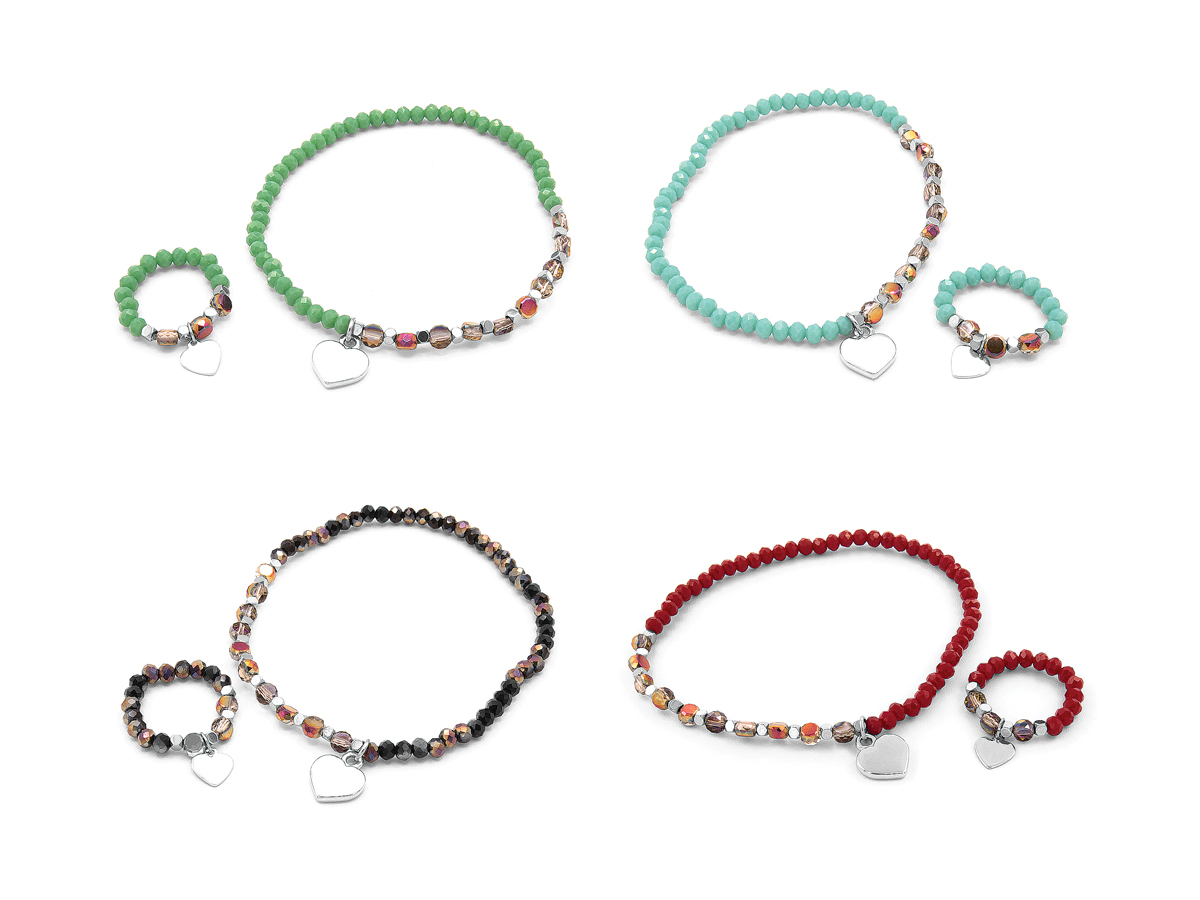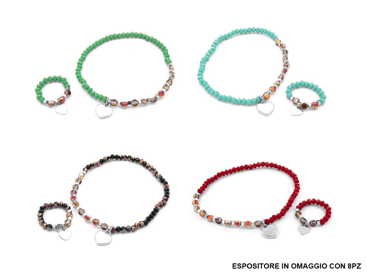 NAVIGARE. PARURE COLLANA ED ANELLO IN RAME E CRISTALLI DI VETRO. MODELLI ASSORTITI. CONFEZIONE: SCATOLA E SHOPPER.