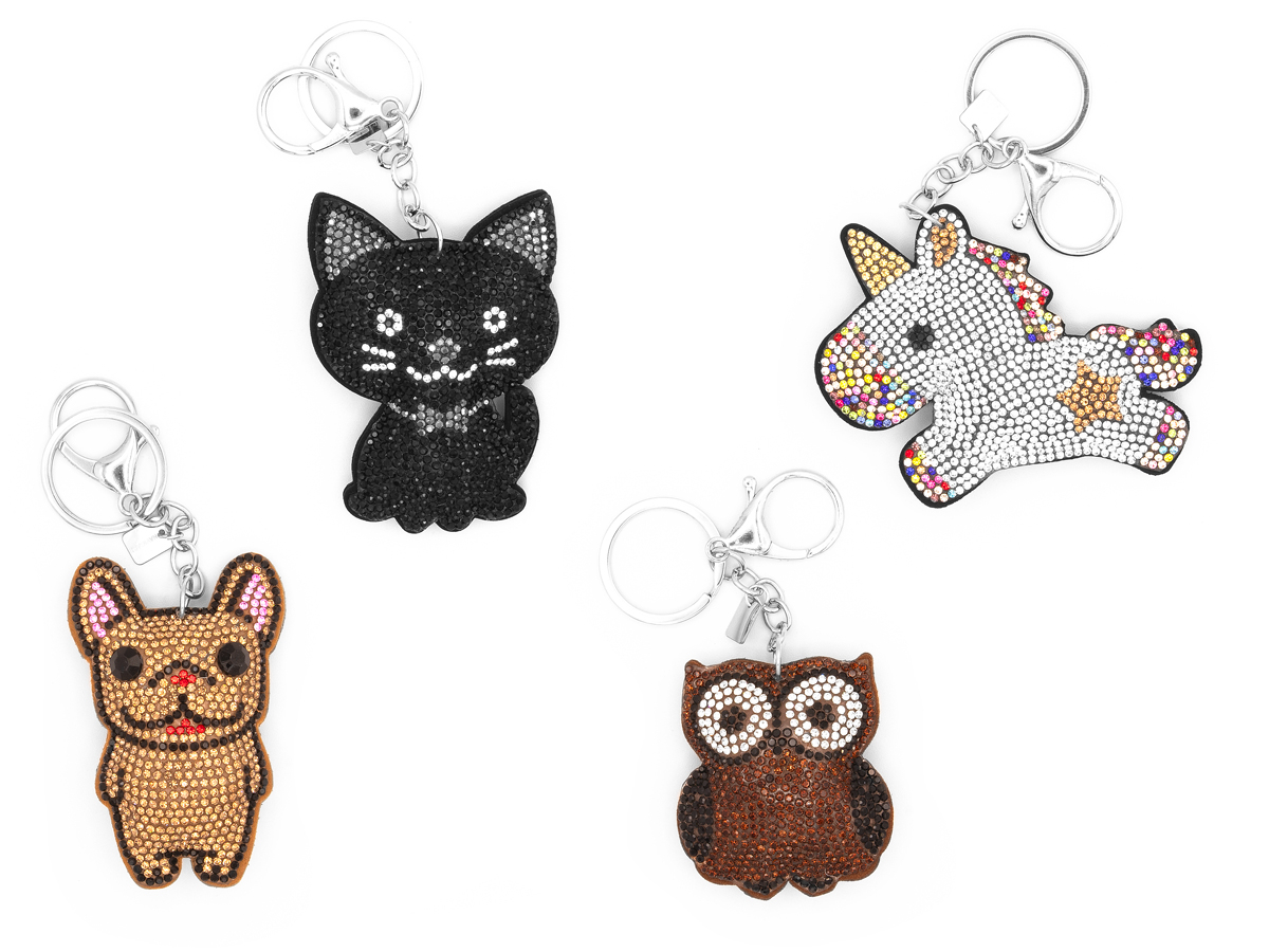 NAVIGARE. PORTACHIAVI DA DONNA IN LEGA DI ZINCO, ECOPELLE E STRASS. MODELLI E COLORI ASSORTITI. CONFEZIONE: SCATOLA E SHOPPER.