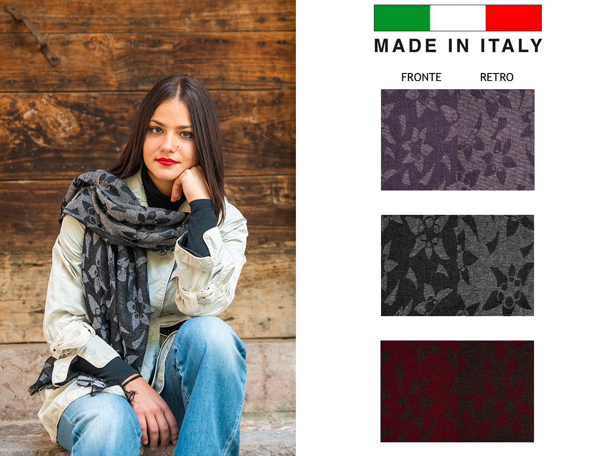 CORTINA POLO STYLE. STOLA DA DONNA DOUBLE FACE IN TESSUTO JACQUARD MADE IN ITALY. COMPOSIZIONE: VISCOSA 27% - POLIESTERE 27% - LANA 15% - MODAL 23% - CASHMERE 8%. MISURA CM. 60X190. COLORI ASSORTITI. A CORREDO ELEGANTE SHOPPER.
