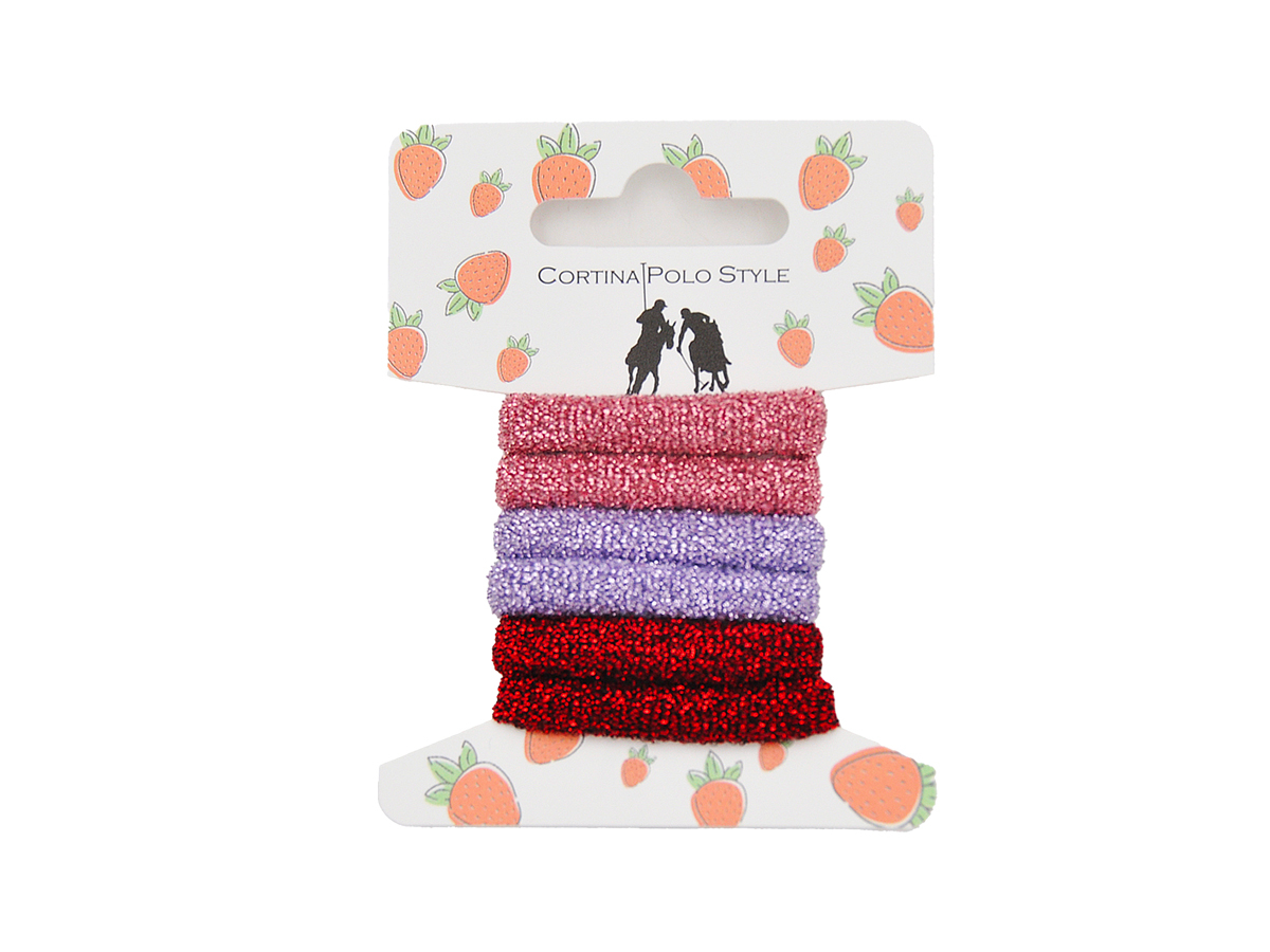 CORTINA POLO STYLE. ELASTICO GLITTER CONFEZIONE 6 CARD DA 6 ELASTICI. COMPOSIZIONE: POLYAMIDE 55% - ELASTAN 40% - POLYES 5%. COLORI ASSORTITI.