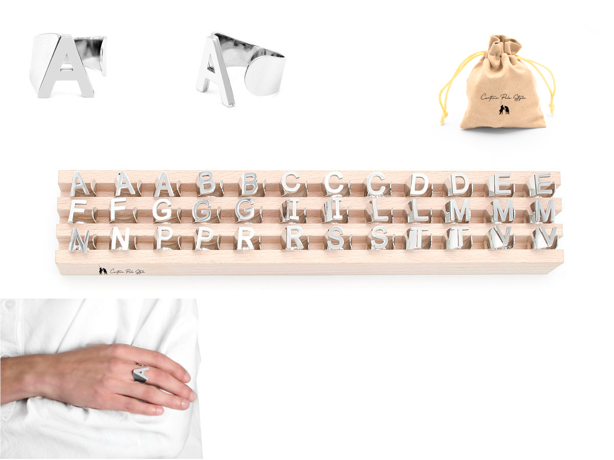 KIT ANELLI LETTERA REGOLABILI IN ACCIAIO POLO CORTINA STYLE CF 36 PZ