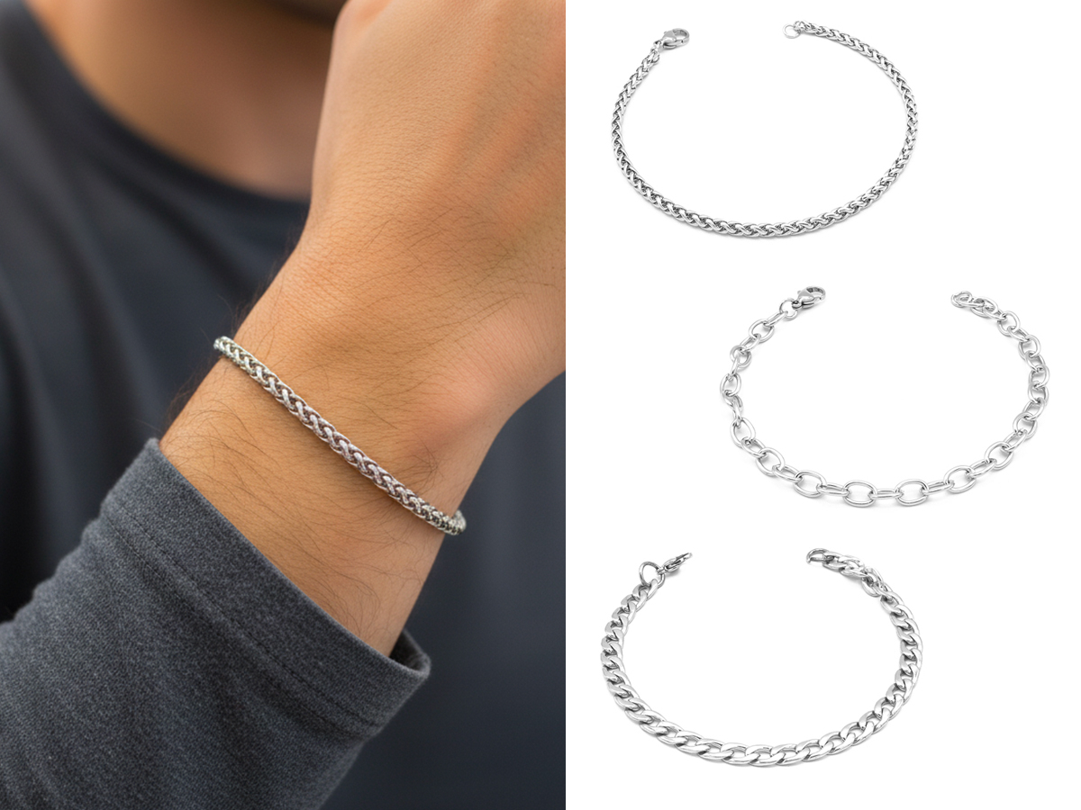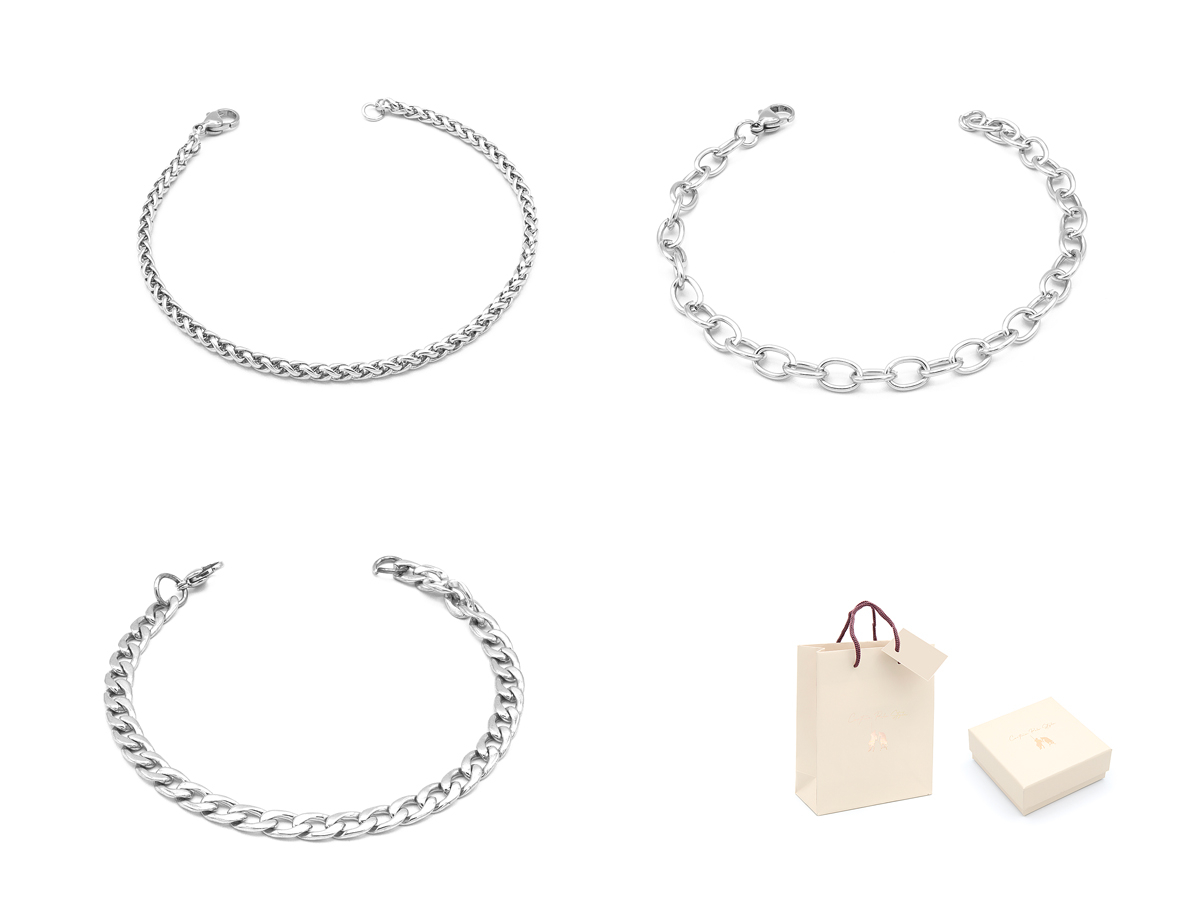 POLO CORTINA STYLE. BRACCIALE UNISEX 3 VARIANTI CATENA IN ACCIAIO. MODELLI ASSORTITI. CONFEZIONE: SCATOLA E SHOPPER