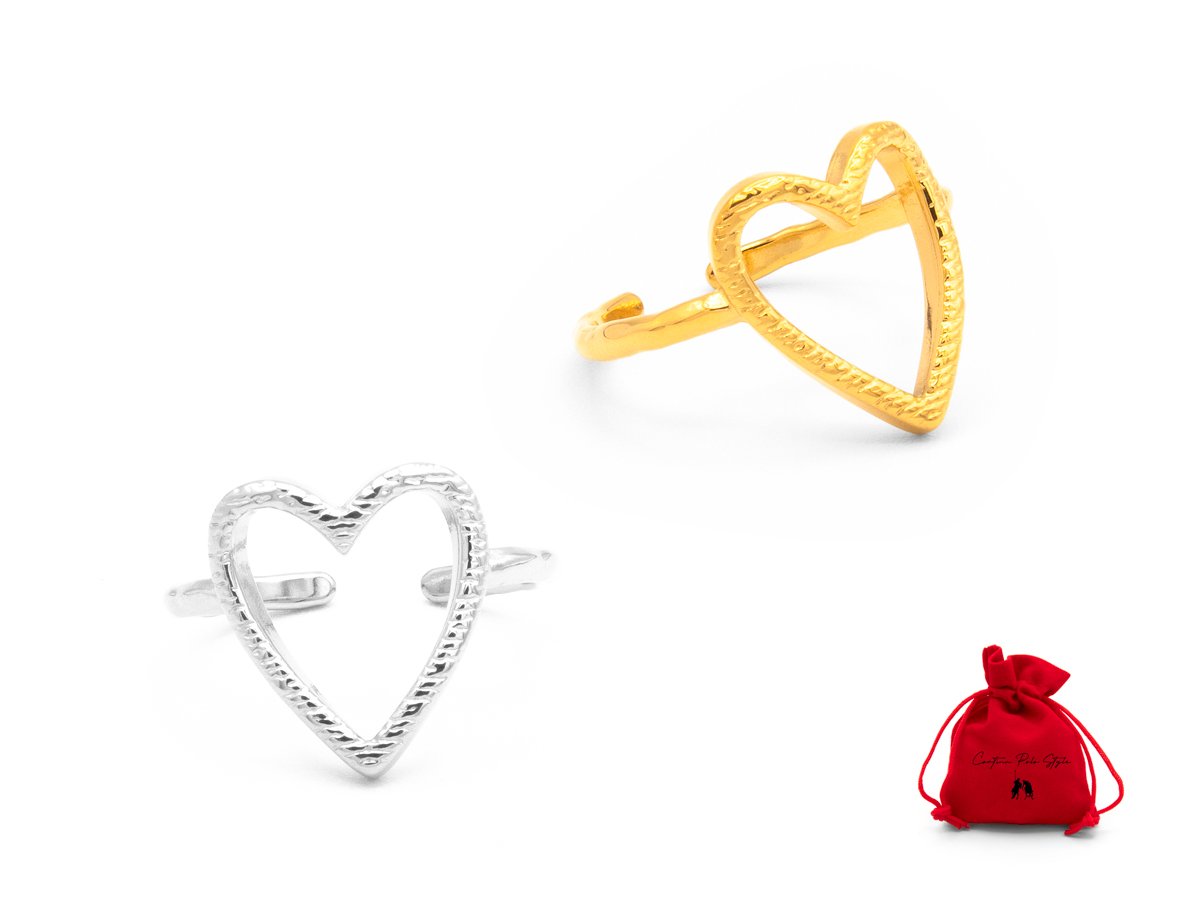 CORTINA POLO STYLE. ANELLO A CUORE REGOLABILE IN ACCIAIO. CONFEZIONE: ELEGANTE SACCHETTO IN VELLUTO.