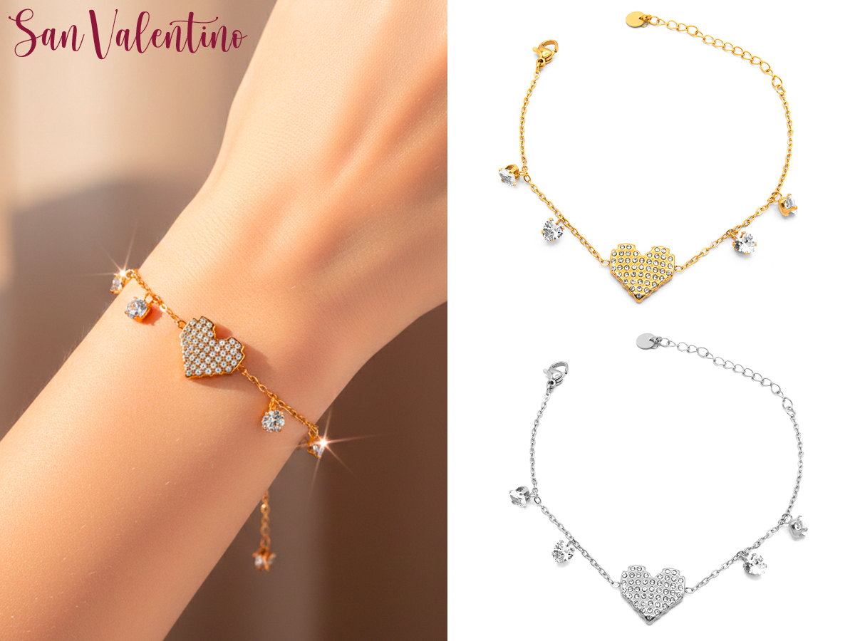 CORTINA POLO STYLE. BRACCIALE DA DONNA IN ACCIAIO CON CUORE E ZIRCONI. COLORI ASSORTITI. CONFEZIONE: SCATOLA E SHOPPER.