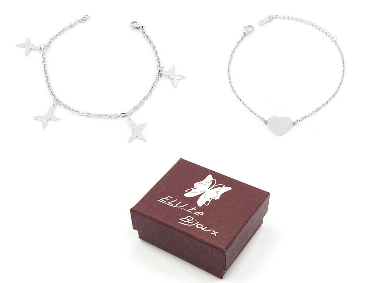 DONNA BRACCIALE IN ACCIAIO CUORE E FARFALLA 2 MODELLI CF 4PZ