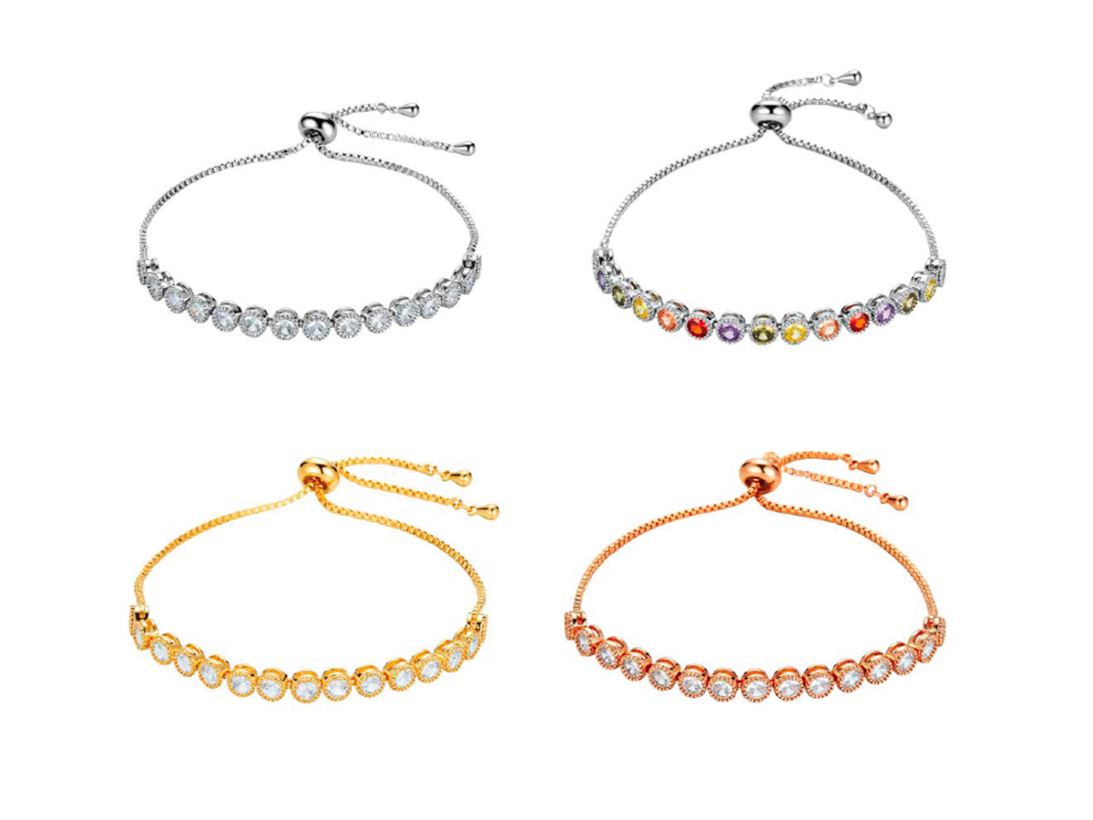 NAVIGARE. STILE TENNIS REALIZZATO CON UNA CATENINA IMPREZIOSITA DA UNA FILA DI CRISTALLI BIANCHI O COLORATI. MODELLI E COLORI ASSORTITI. CONFEZIONE: SCATOLA E SHOPPER.