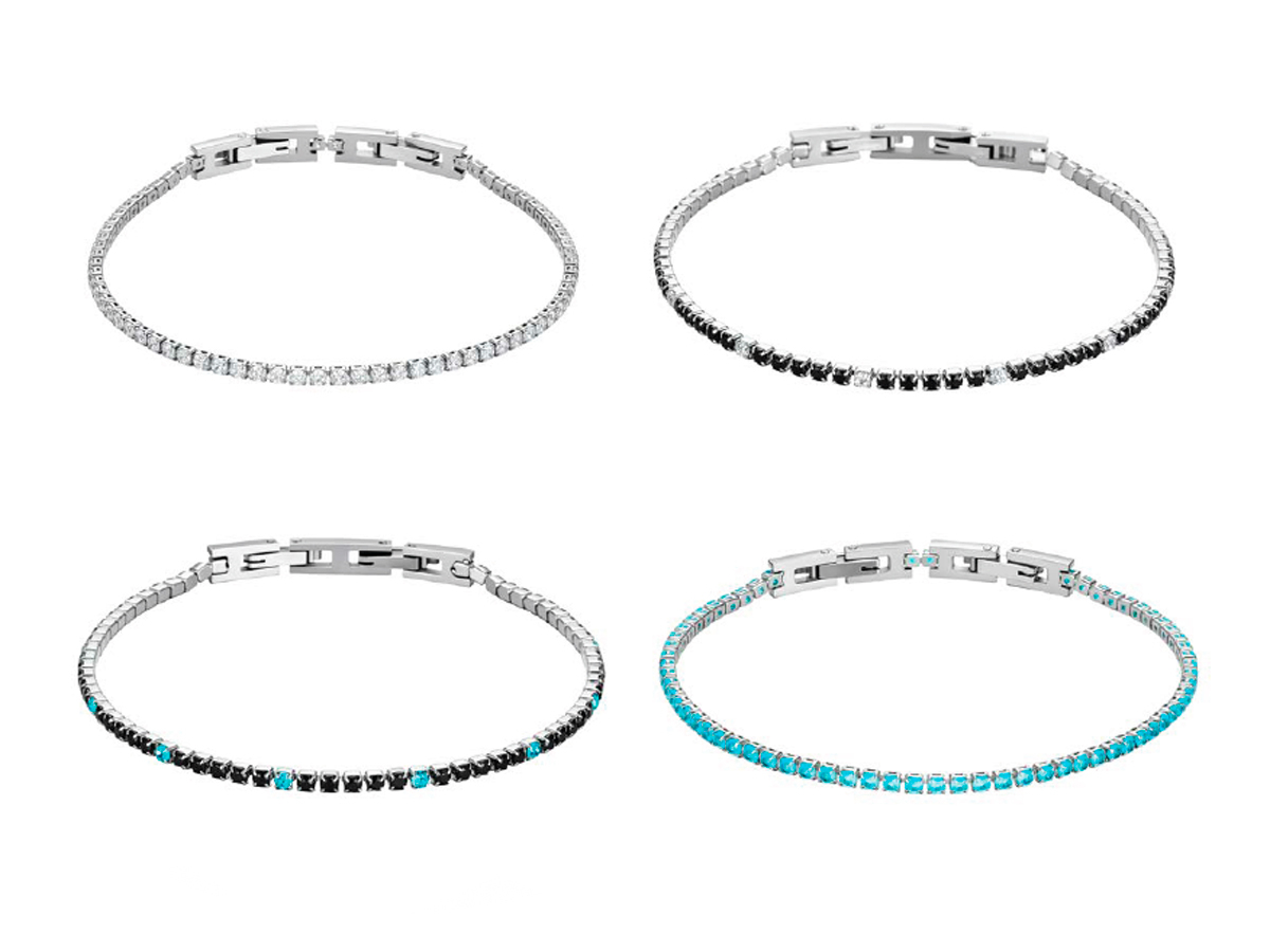NAVIGARE. BRACCIALE DA DONNA STILE TENNIS CON PICCOLI CRISTALLI BIANCHI O COLORATI. MODELLI E COLORI ASSORTITI. CONFEZIONE: SCATOLA E SHOPPER.
