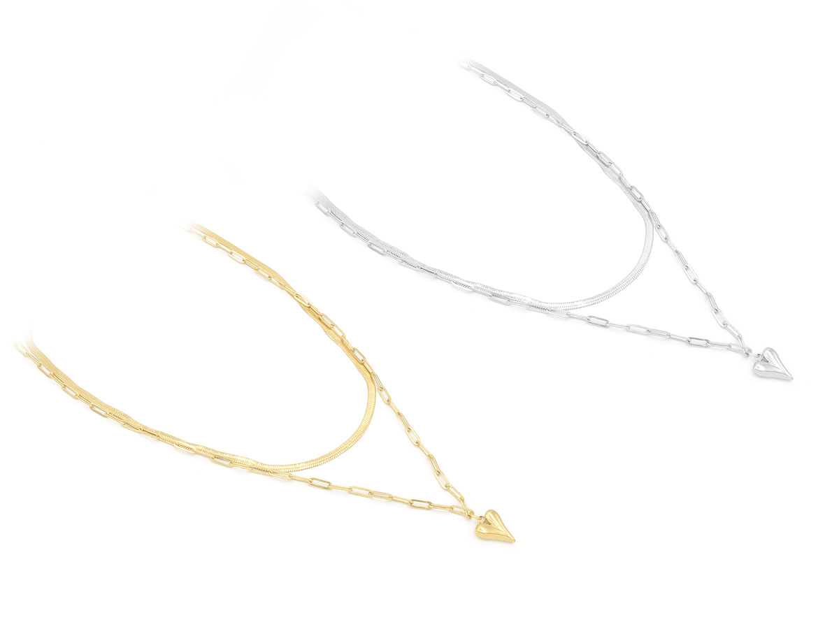 COLLANA IN ACCIAIO DUE FILI CATENA E PIATTINA -CONFEZIONE: SCATOLA E SHOPPER