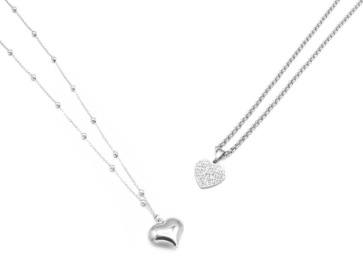 CORTINA POLO STYLE. COLLANA DA DONNA CON PENDENTE A CUORE IN ACCIAIO E STRASS. MODELLI ASSORTITI. CONFEZIONE: SCATOLA E SHOPPER.