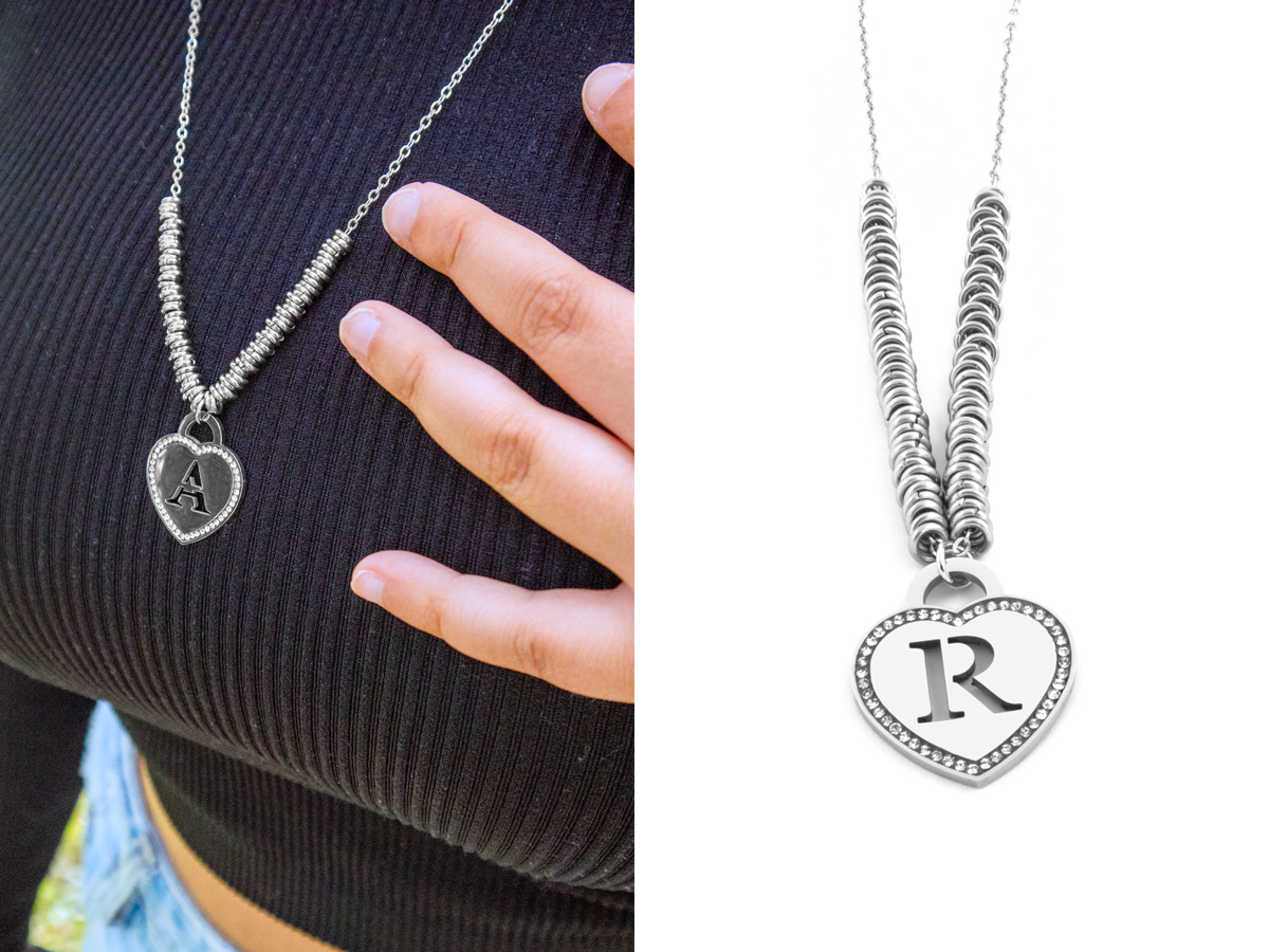 NAVIGARE. COLLANA DA DONNA IN ACCIAIO CON CUORE LETTERA ARRICCHITO DA STRASS. LUNGHEZZA: 45 CM. CONFEZIONE: SCATOLA E SHOPPER.