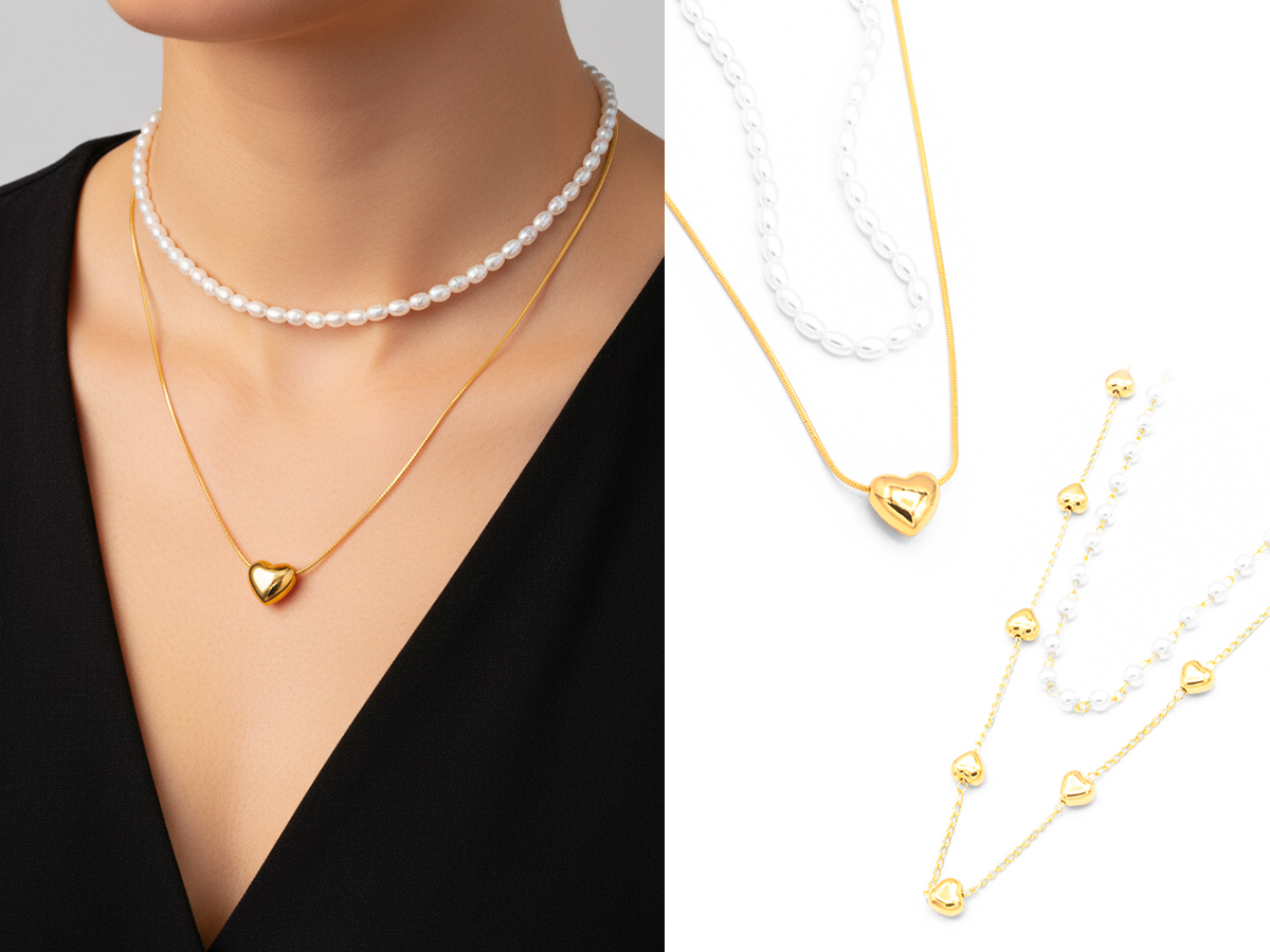 DONNA COLLANA CUORI E PERLE IN METALLO POLO CORTINA STYLE CF 4 PZ