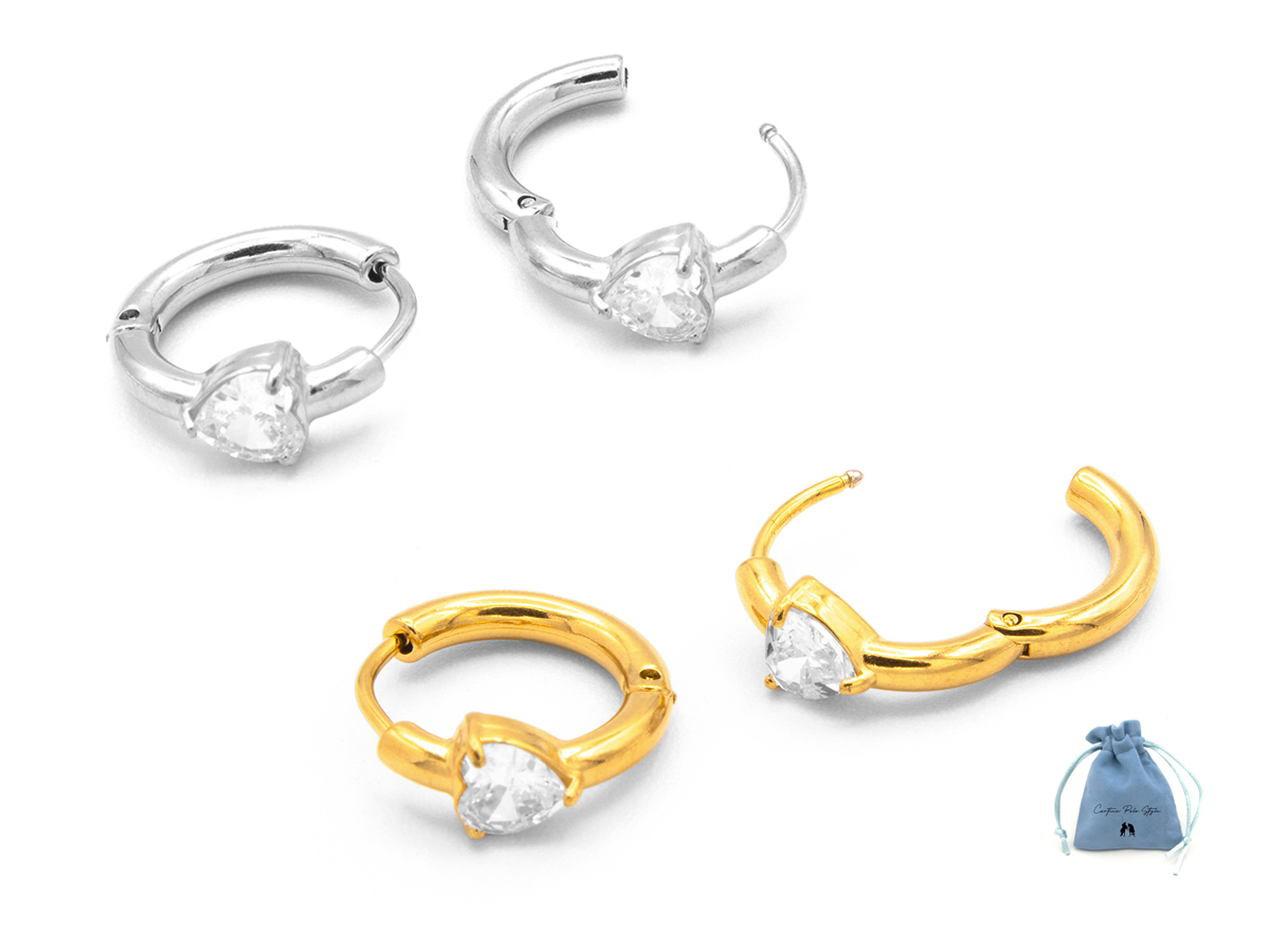 CORTINA POLO STYLE. ORECCHINO DA DONNA IN ACCIAIO CON CUORE IN ZIRCONE. COLORI ASSORTITI. CONFEZIONE: ELEGANTE SACCHETTO IN VELLUTO.