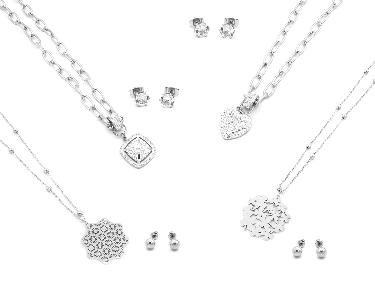 DONNA PARURE COLLANA ED ORECCHINI IN ACCIAIO E STRASS NAVIGARE CF 8 PZ