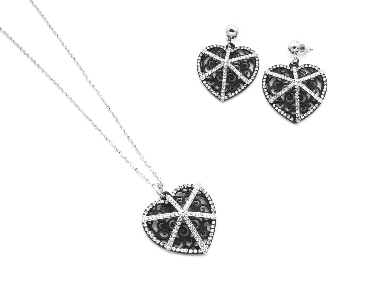 DONNA PARURE CUORE IN METALLO RODIATO E STRASS POLO C.S. CF 4 PZ