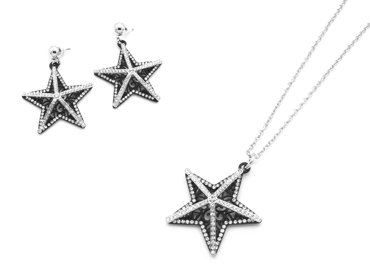 DONNA PARURE STELLA IN METALLO RODIATO E STRASS POLO C.S. CF 4 PZ
