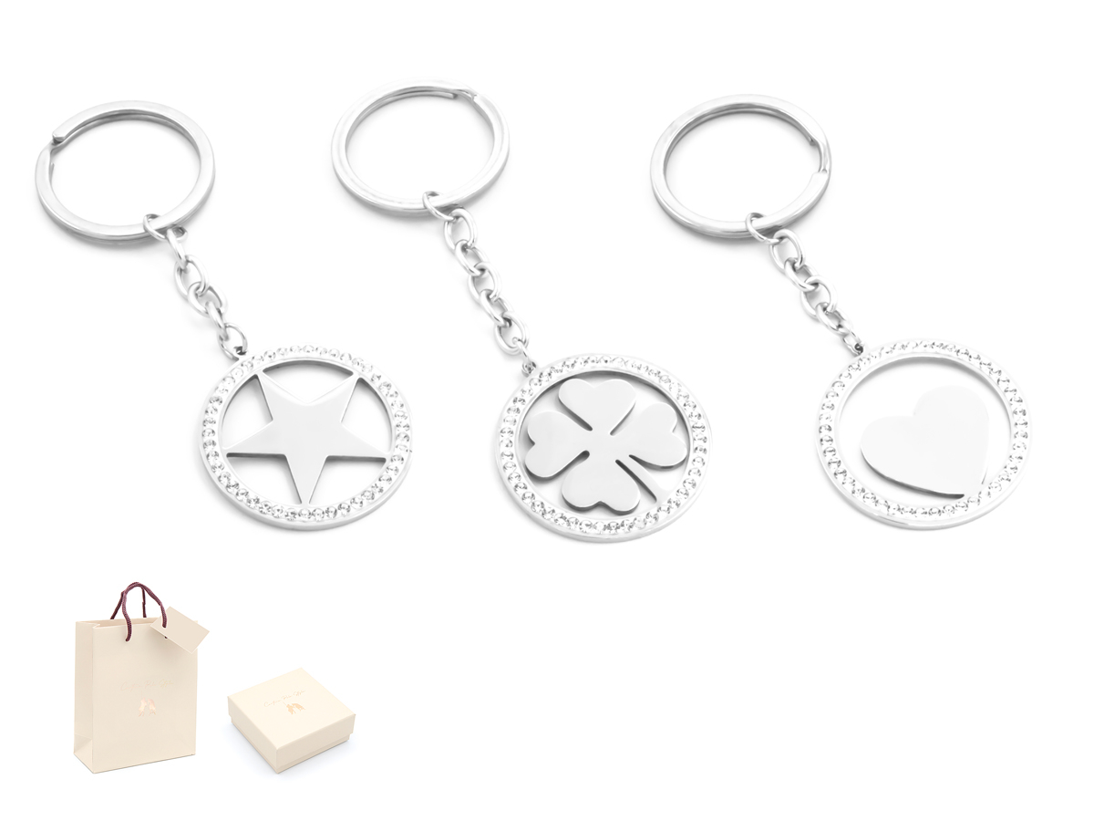 PORTACHIAVI IN ACCIAO E STRASS - CONFEZIONE: SCATOLA E SHOPPER