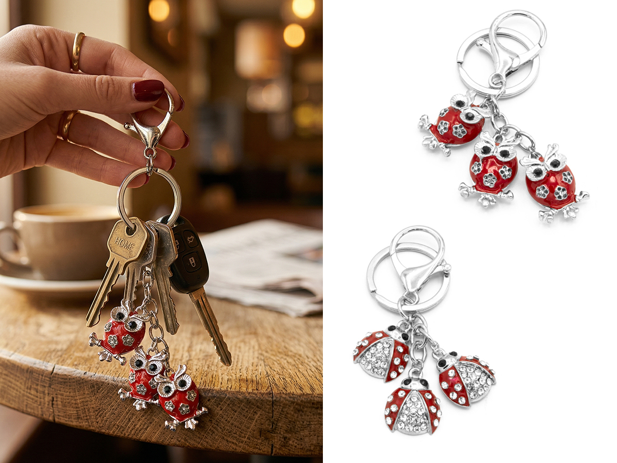 CORTINA POLO STYLE. PORTACHIAVI PORTAFORTUNA DA DONNA IN LEGA DI ZINCO. MATERIALE: LEGA DI ZINCO E STRASS. CONFEZIONE: SCATOLA E SHOPPER.