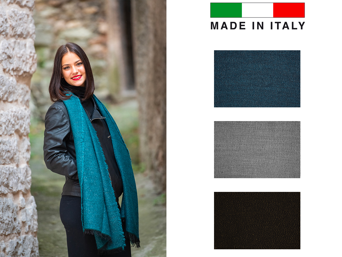 CORTINA POLO STYLE. STOLA DA DONNA IN TESSUTO JACQUARD MADE IN ITALY. COMPOSIZIONE: ACRILICO 52% - VISCOSA 3% - MODAL 30% - LANA 6% - ALPACA 3% - METALLO 6%. MISURA CM. 70X200. COLORI ASSORTITI. A CORREDO ELEGANTE SHOPPER.
