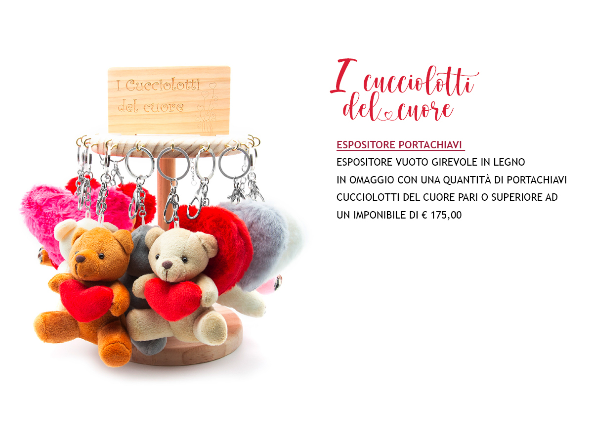 I CUCCIOLOTTI DEL CUORE. ESPOSITORE VUOTO GIREVOLE IN LEGNO IN OMAGGIO CON UNA QUANTITÀ DI PORTACHIAVI CUCCIOLOTTI DEL CUORE PARI O SUPERIORE AD UN IMPONIBILE DI 175,00