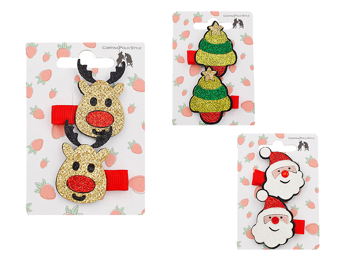 CORTINA POLO STYLE. FERMAGLIO NATALIZIO CF. 6 CARD. COMPOSIZIONE: METALLO - SINTETICO. COLORI E MODELLI ASSORTITI.