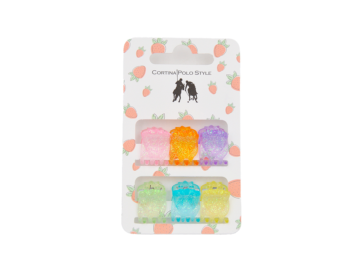 CORTINA POLO STYLE. PINZA GLITTER CONFEZIONE 6 CARD. COMPOSIZIONE: ACRILICO - METALLO. COLORI ASSORTITI.