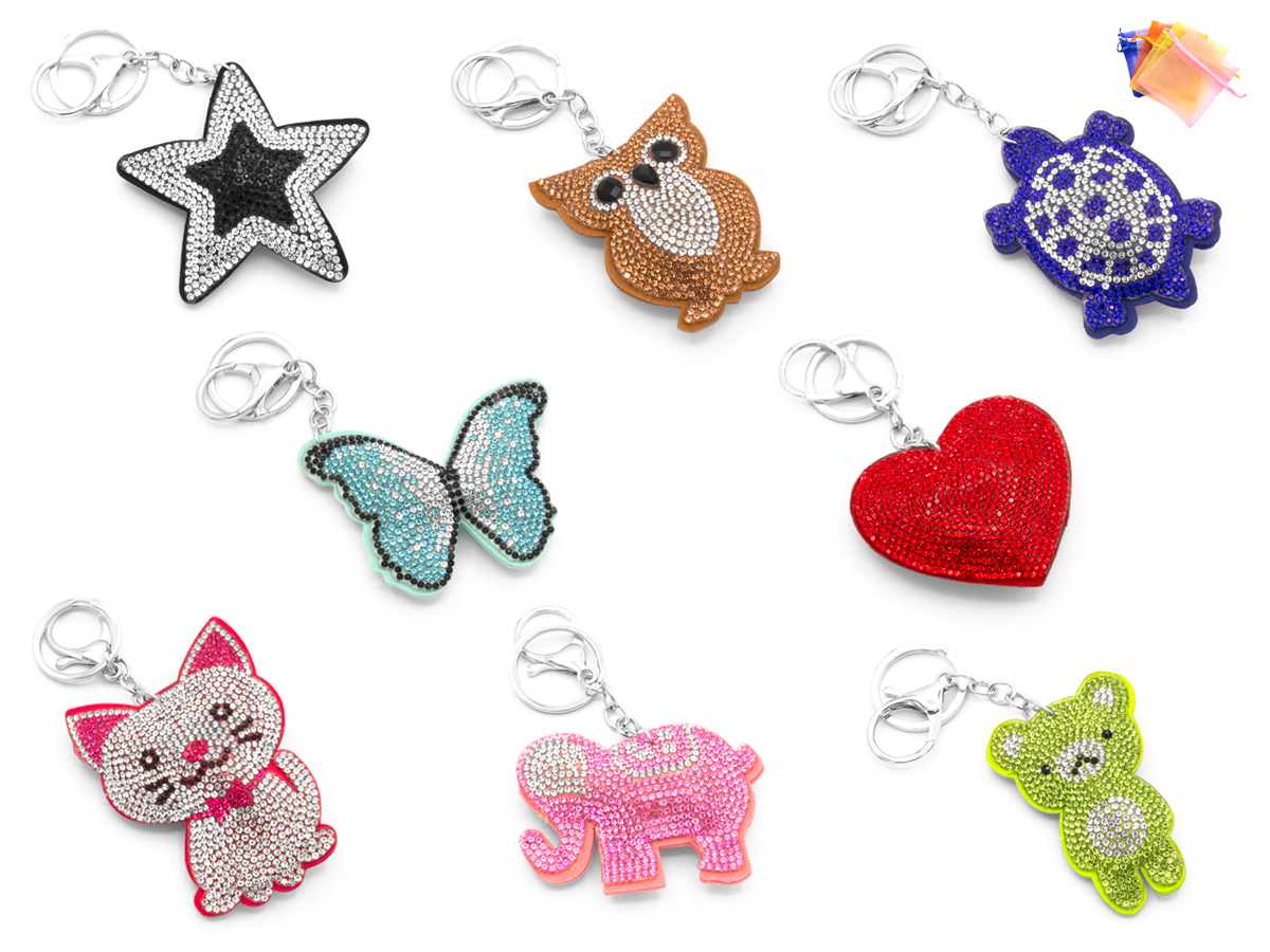 PORTACHIAVI STRASS SOGGETTI VARI IN STOFFA CF 16 PZ