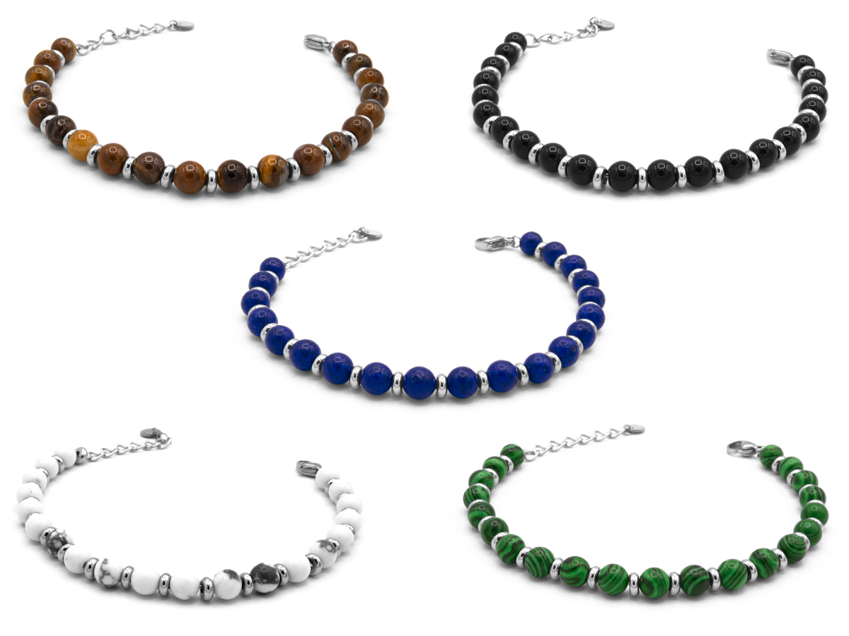 CORTINA POLO STYLE. UNISEX BRACCIALE CON PIETRE DURE IN ACCIAIO. COLORI ASSORTITI. CONFEZIONE: SCATOLA E SHOPPER.